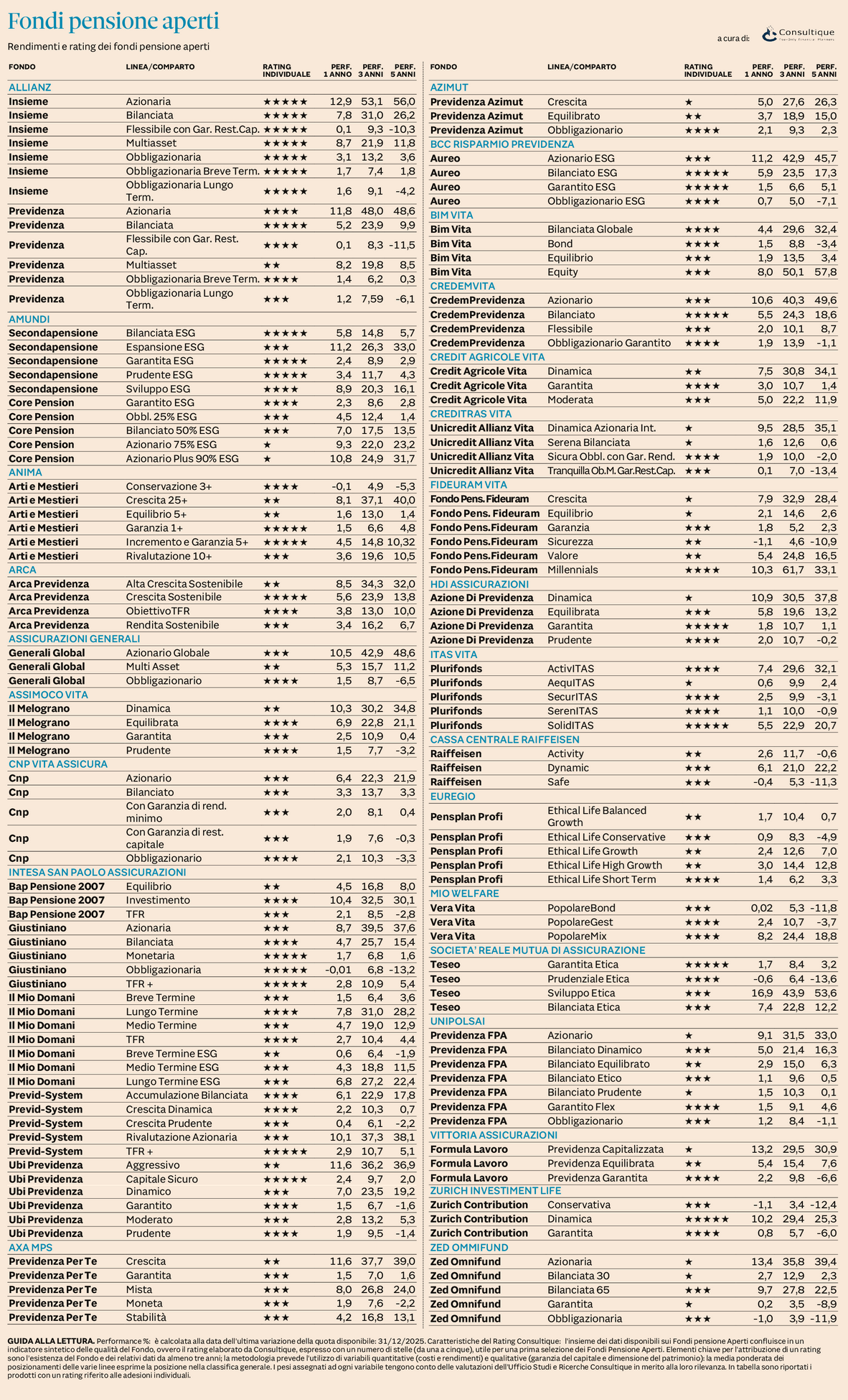 Plus 24 | Fondi Pensione Aperti - rendimenti e rating al 31 dicembre 2025