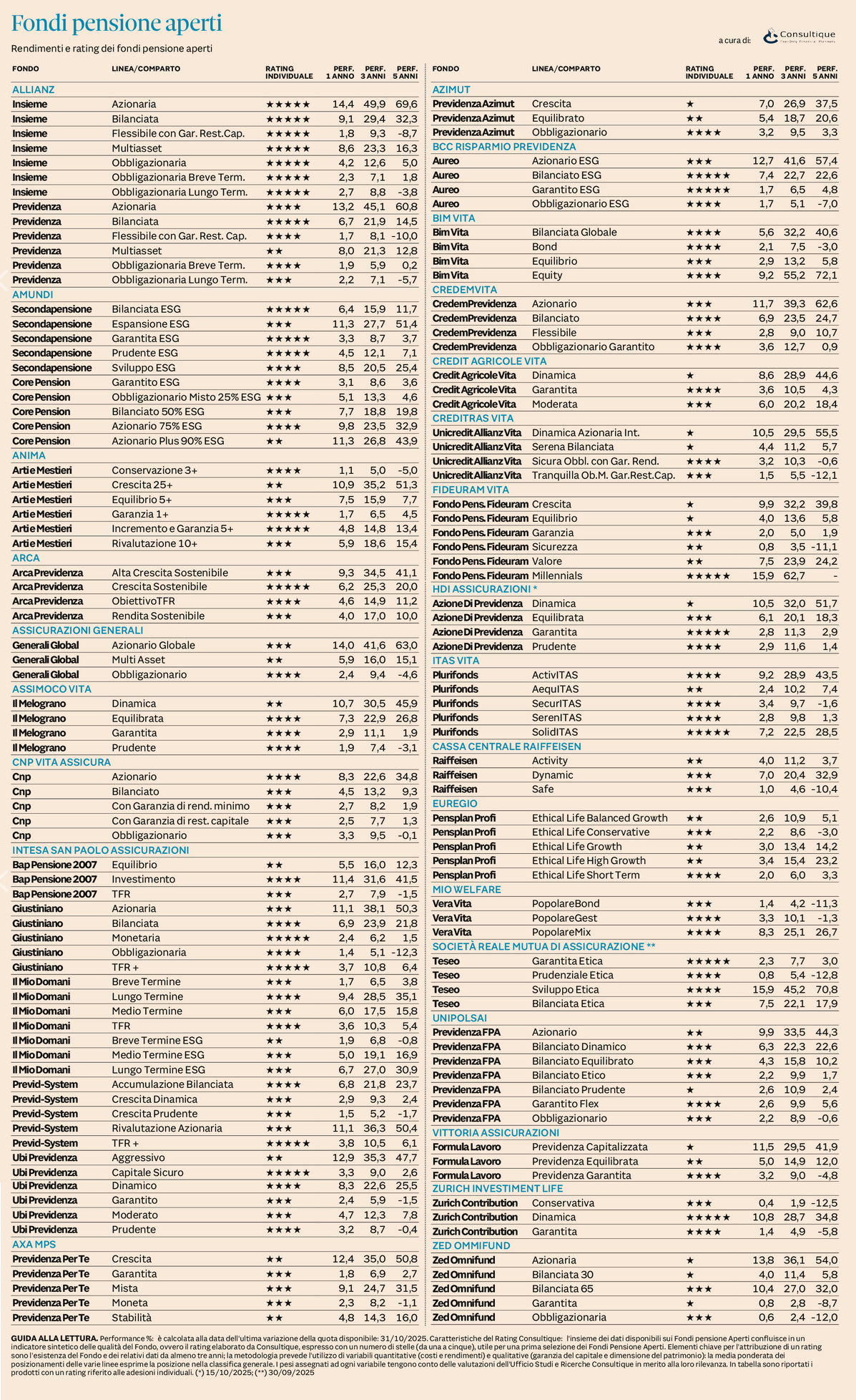 Plus 24 | Fondi Pensione Aperti - rendimenti e rating al 31 ottobre 2025