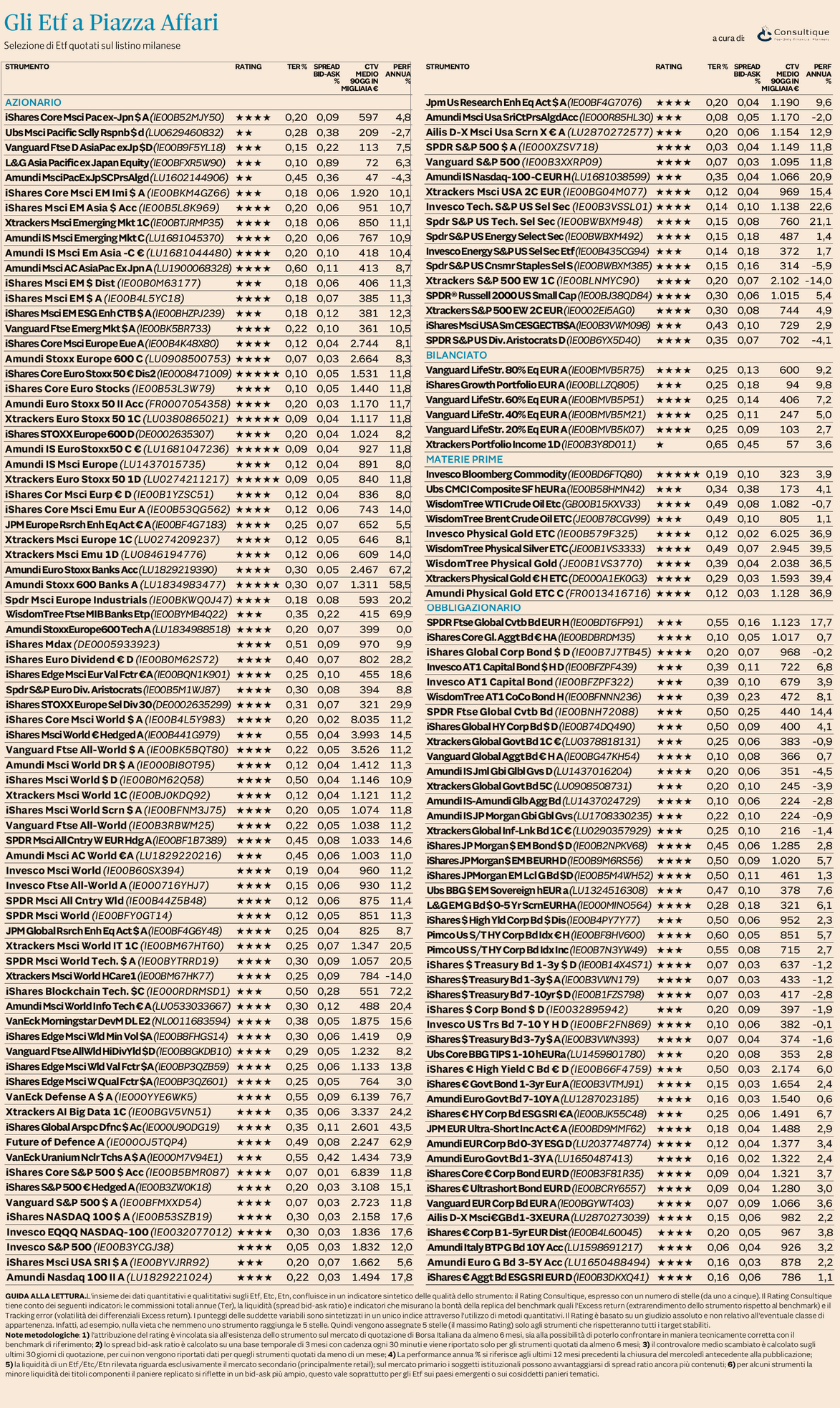 Plus 24 | Ufficio Studi e Ricerche Consultique: Il nuovo rating aggiornato degli ETF